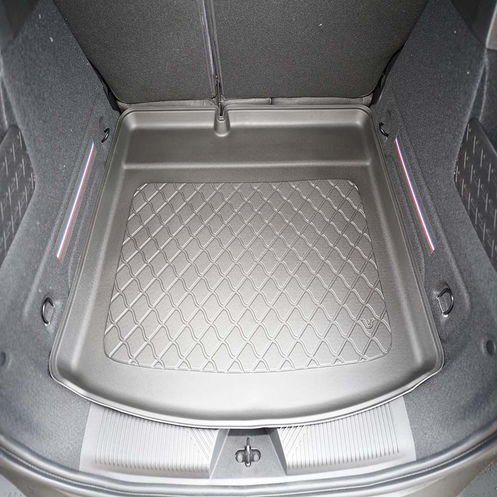 RENAULT 4 E-TECH Boot liner Mat , Custom-designed car boot liners are intended to fit seamlessly into the boot of your vehicle. Boot liners consist of a sturdy plastic material that offers flexibility, making it easy to roll them up when not in use. All the liners have no odor at all. The liner is equipped with a textured finish, ensuring a secure anti-slip surface. Entirely resistant to water and can be washed off with a hose. Each of our products features a lipped edge designed to safeguard the car?s interior from any potential spills.